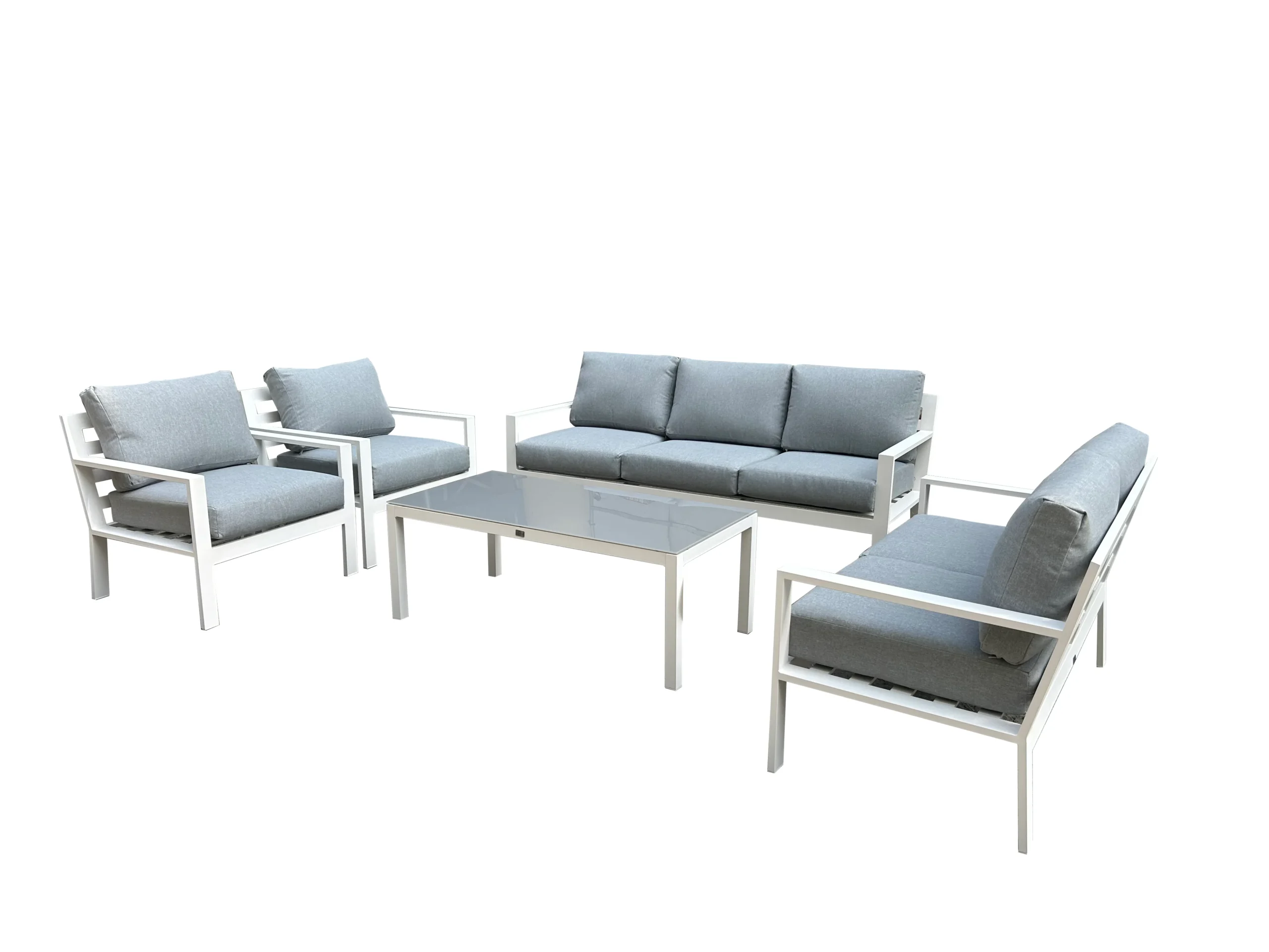 POWDER COATED ALUMINUM 3-SETER SOFA: L190XW70XSH45XBH72 2-SETER SOFA: L130XW70XSH45XBH72 SINGLE SOFA : L75XW70XSH45XBH72 TABLE GLASS TOP:L120W60XH45
